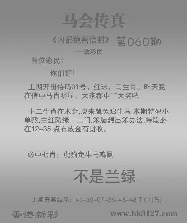 | 060期 | 狗 | 7尾 | 蓝单 | 20-29 | 31鼠 |