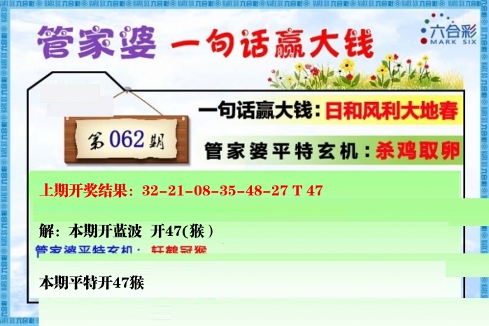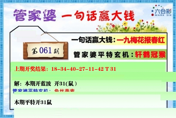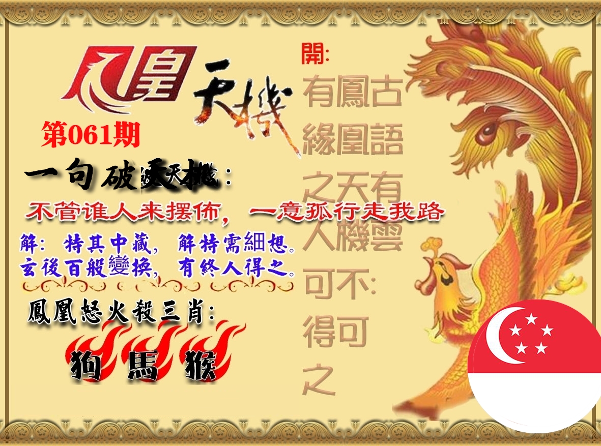 | 061期: ⑥肖 | 牛羊蛇龙马狗 | 猴47中 |