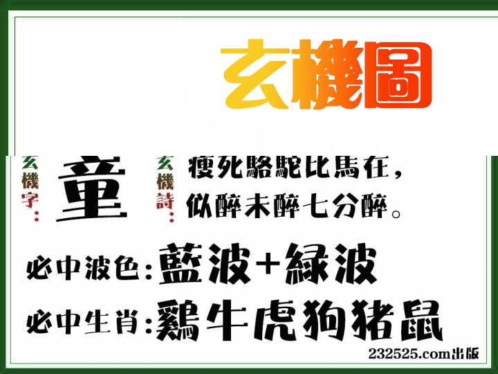 | 053期: ⑨肖 | 龙鼠狗兔虎鸡羊牛马 | 猴11中 |