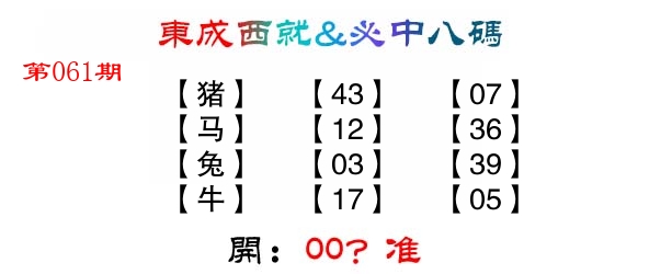 | 061期: ⑦肖 | 牛羊蛇龙马狗猪 | 猴47中 |