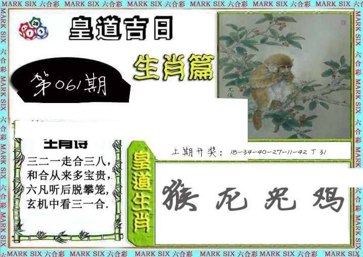 | 061期: ⑨肖 | 牛羊蛇龙马狗猪猴虎 | 猴47中 |